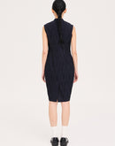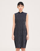• Medium-weight cotton polyester mix fabric with pin tucked effect. It has stretch and won’t cling on to the skin in hot weather.